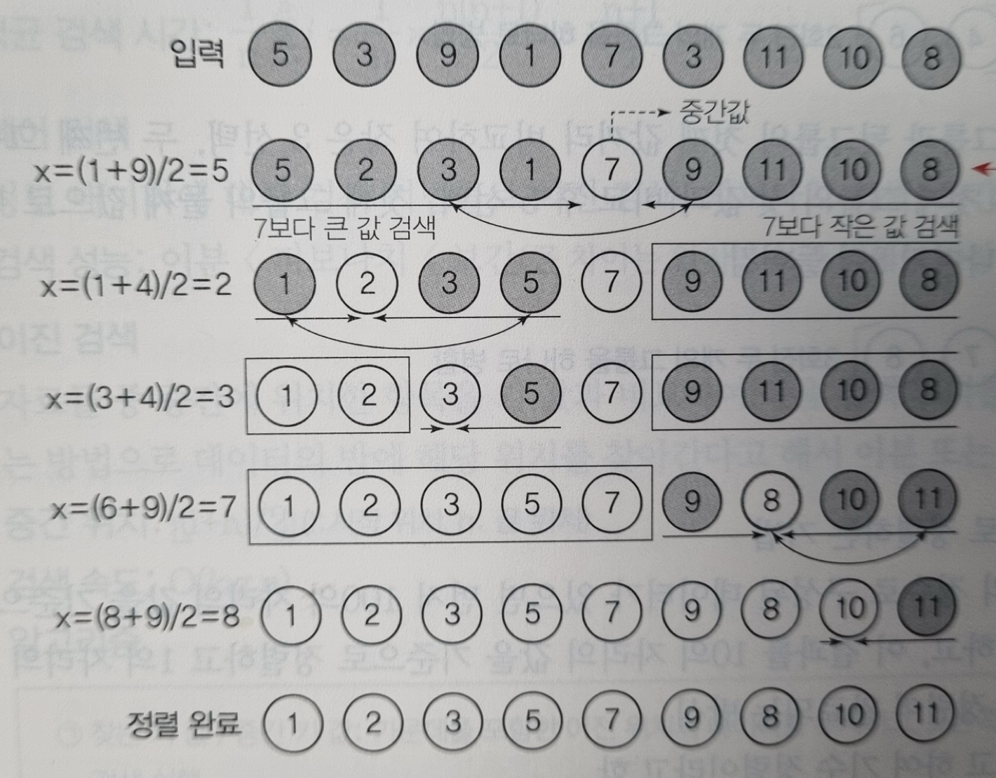 (2) 퀵 정렬 과정