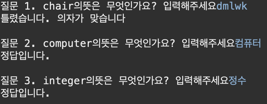 5. 배열1의 각각의 단어를 알파벳을 조각내어 섞어서 정답 맞추기