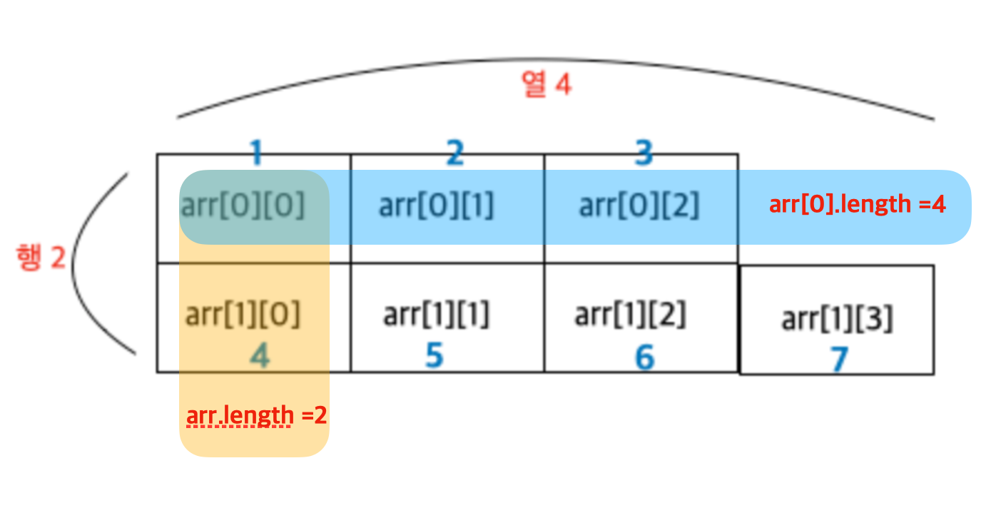 - 배열의 length 속성은 배열의 개수, 크기를 반환해주기 때문에 실제 요소의 개수와는 다르다