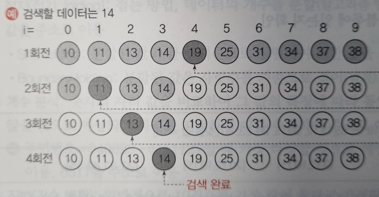 자료들 중 중간에 위치한 항목을 키 값과 비교하여 다음 검색 위치를 결정하여 검색을 계속하는 방법