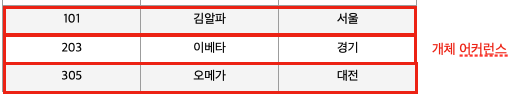 - 개체 어커런스 : 개체 타입에 의해 생성된 실제 값 ; 레코드