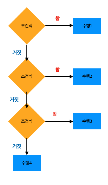만약에 조건문1 이라면 {} 되고 만약에 조건문2라면 {} 되고 그것도 아니라면 {} 된다