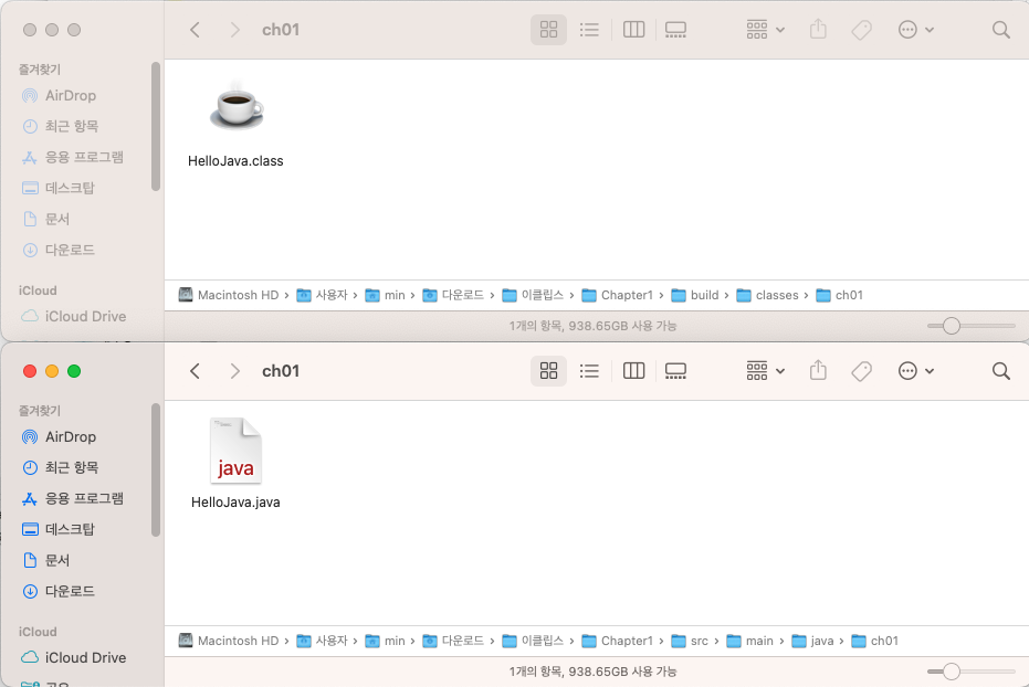 HelloJava.class는 자바파일을 컴파일한 파일이고, 실제 구동되는 파일은 이것이다