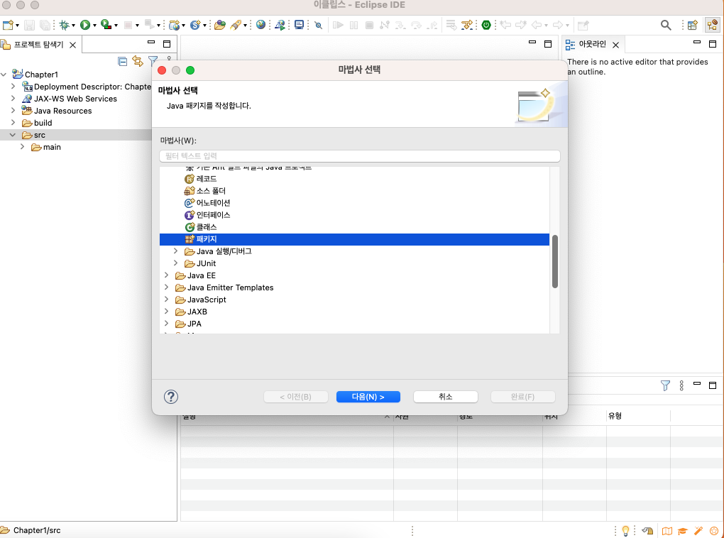 SRC 소스 > 패키지 > 클래스 형태로 만든다