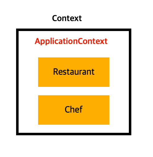 스프링이 객체를 만들기 위해 context 컨텍스트라는 메모리 영역을 사용하고 ApplicationContext 객체를 만들었다