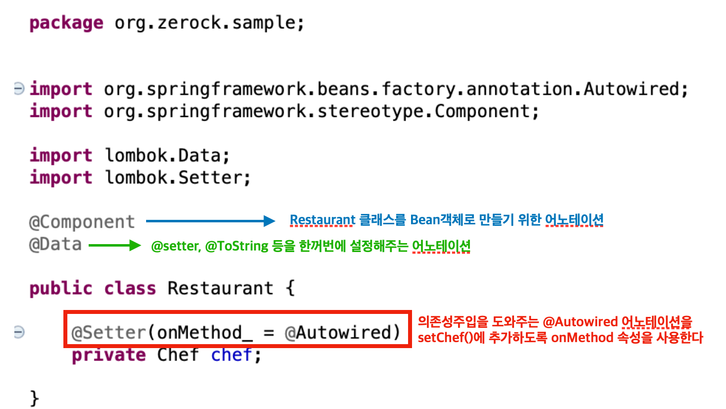 스프링은 Chef 객체의 레퍼런스를 Restaurant객체에 주입한다
