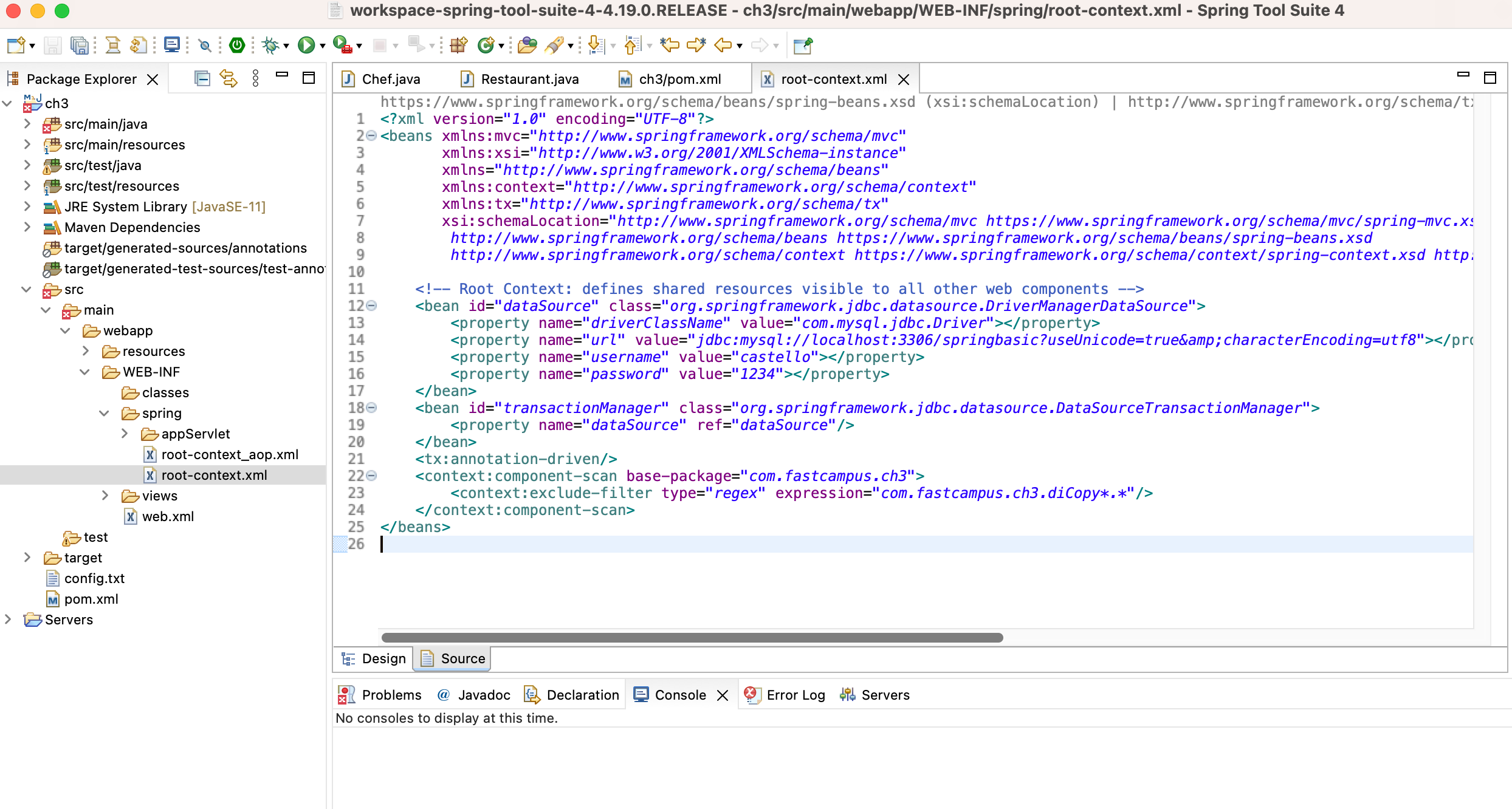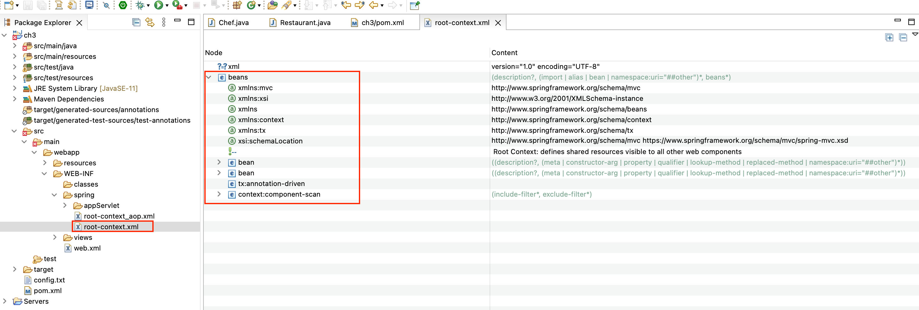 XML 설정파일인 root-context.xml 대신 RootConfig클래스를 사용한다