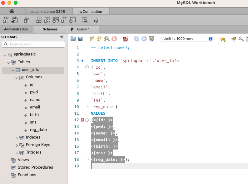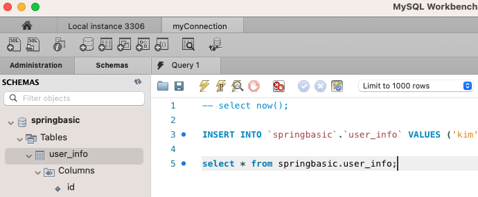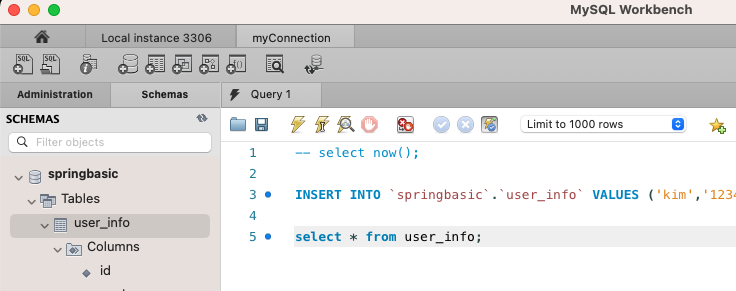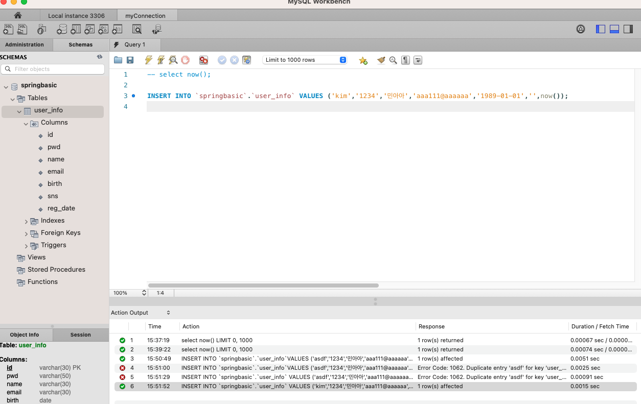 insert into : 스키마에 있는 user-info라는 테이블 정보이다