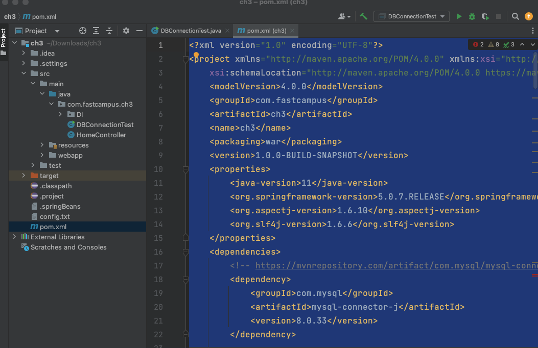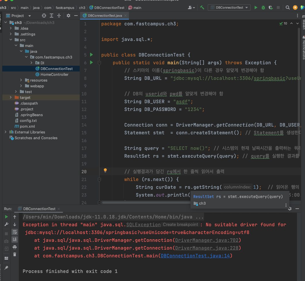 DB 데이터베이스의 jdbc 드라이버가 없다는 오류가 뜬다