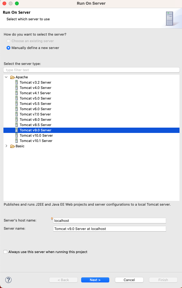 아파치 톰캣 > 내가 설치했던 9.0 버전 서버 선택