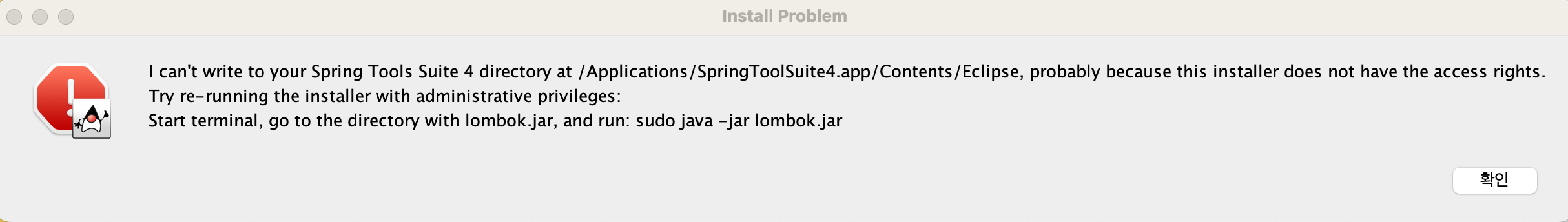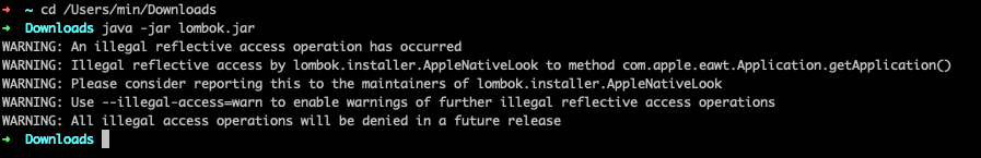 터미널에서 lombok.jar 경로를 찾아 설치한다
