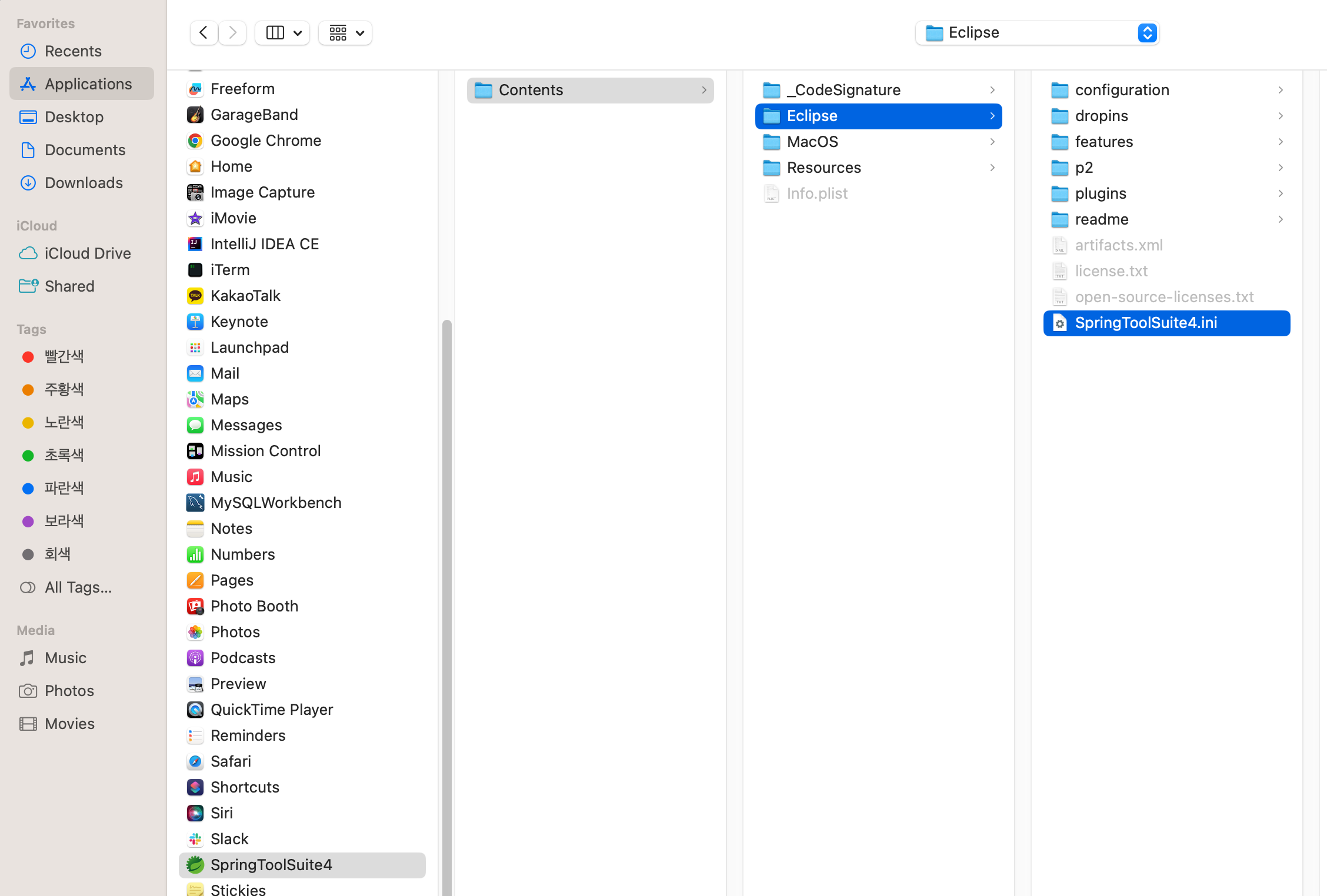 cat /Applications/SpringToolSuite4.app/Contents/Eclipse/SpringToolSuite4.ini