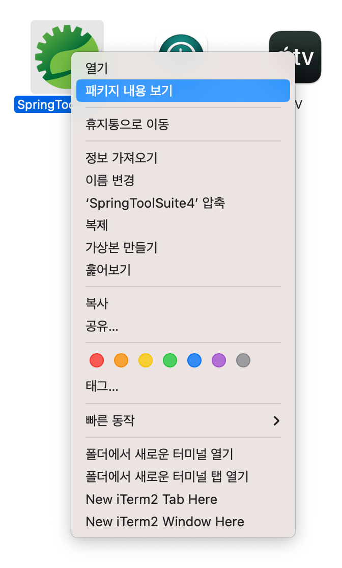 응용프로그램의 폴더를 열어서