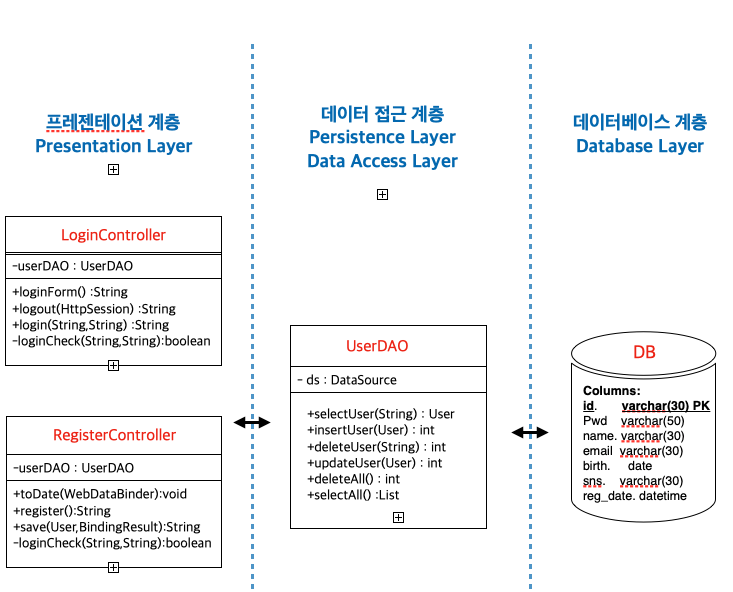 아래 링크에 작업한 여러 메서드가 모여진 것이 DAO 이다