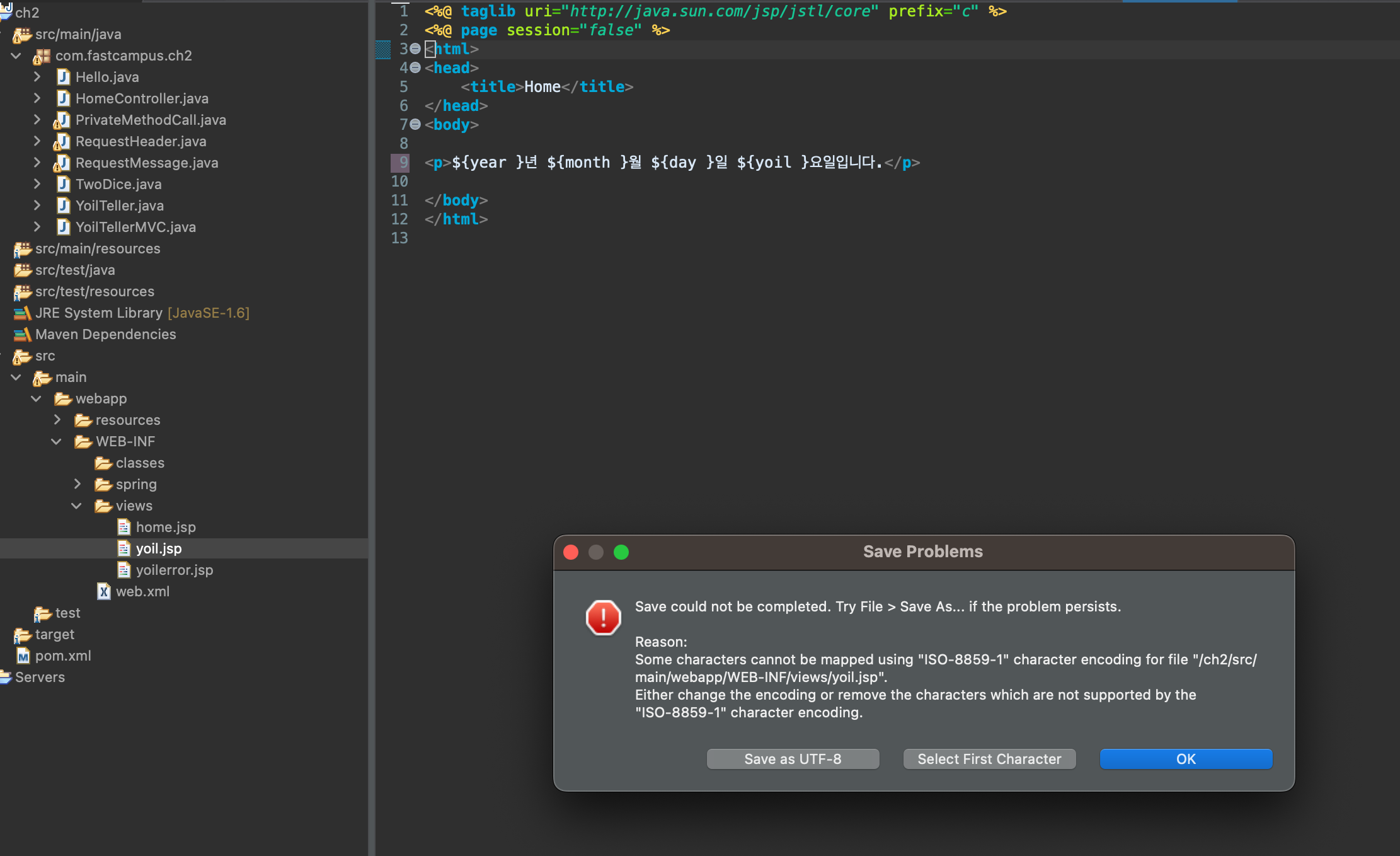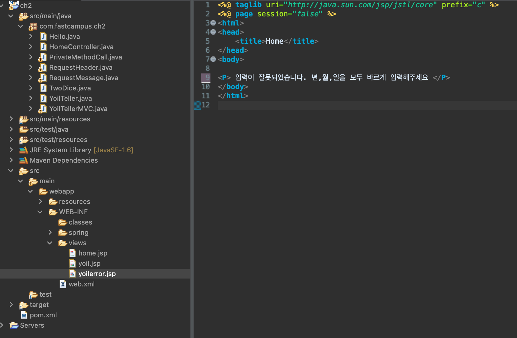 오류발생 출력하는 yoilerror.jsp 파일 생성