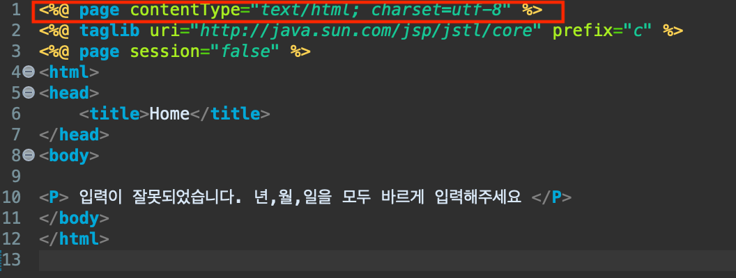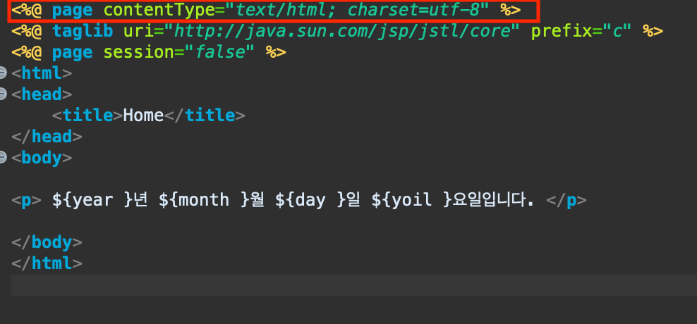 페이지의 text/html , utf-8 타입 설정 하는 항목 넣기