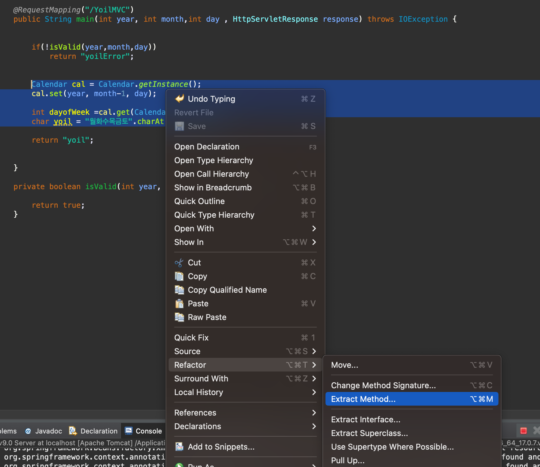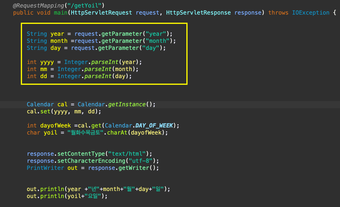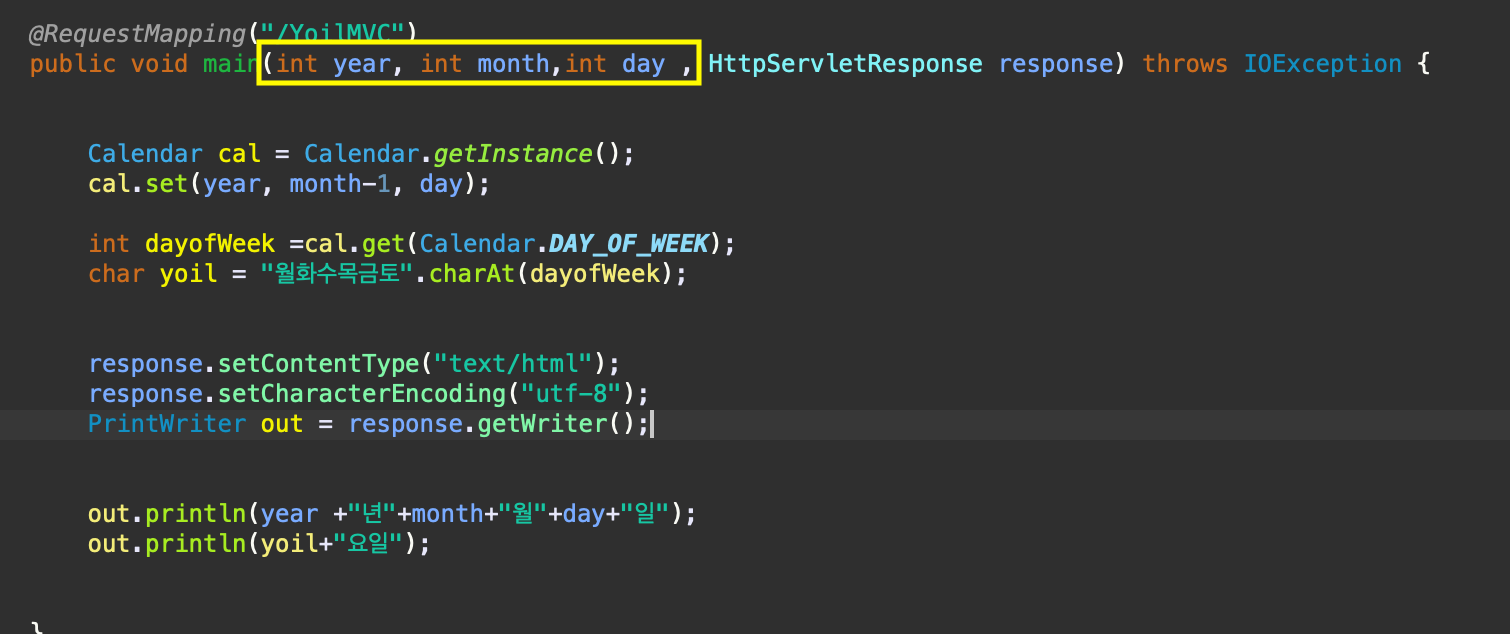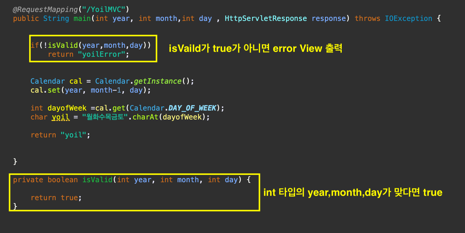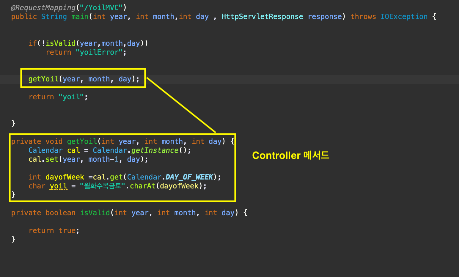 Controoler 가 정상적으로 처리되었을때 view는 yoil.jsp 라는 정상 view를 반환해라