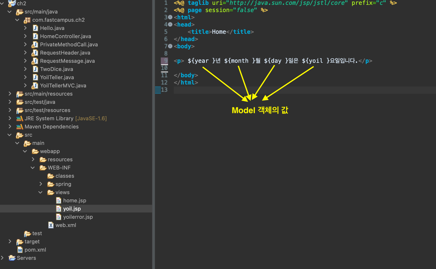 JSP 파일에 각 모델 객체의 값으로 반영되어 출력되도록 만든다