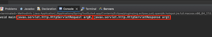 메서드는 동일하게 확인이 되지만 매개변수는 arg0 , arg1로 뜨기 때문에