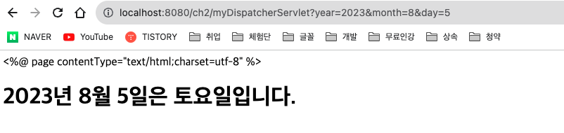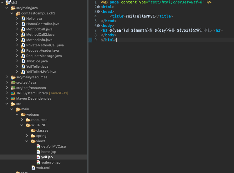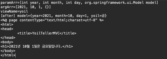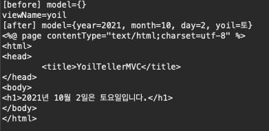 YoilTellerMVC.java 에서 반환하는 yoil.jsp 파일을 읽어온다