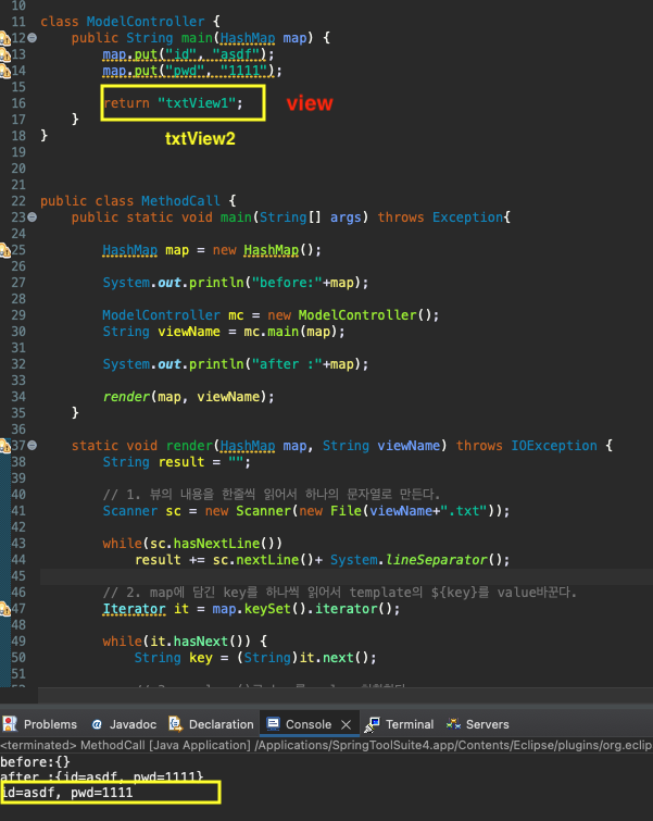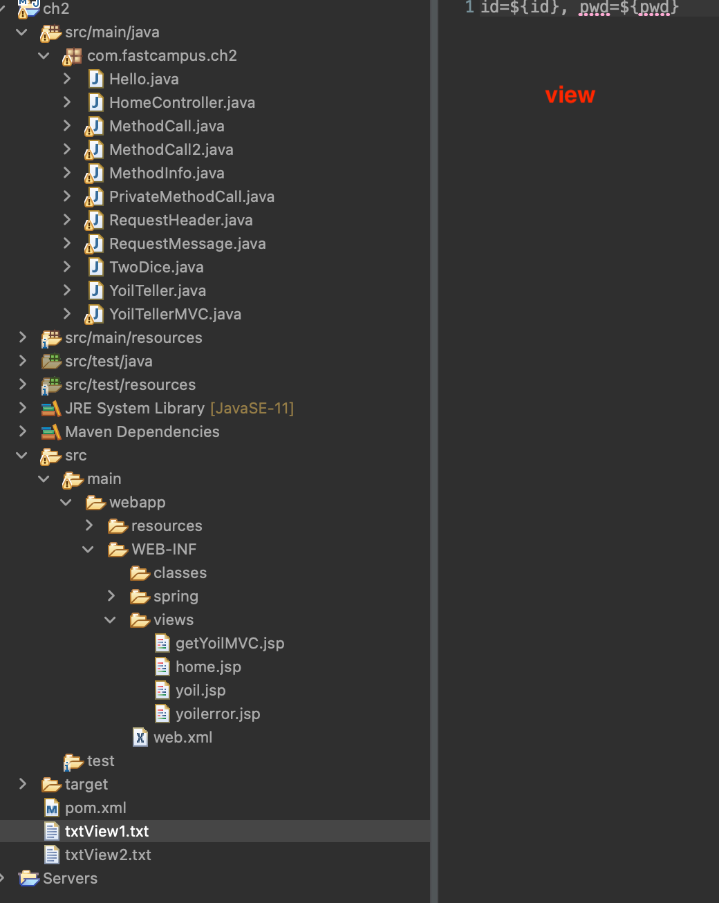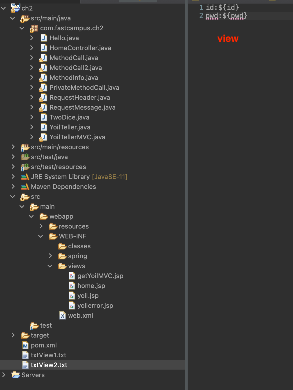 컨트롤러가 map을 가리키고 viewname인 txtView2를 반환하라 한다