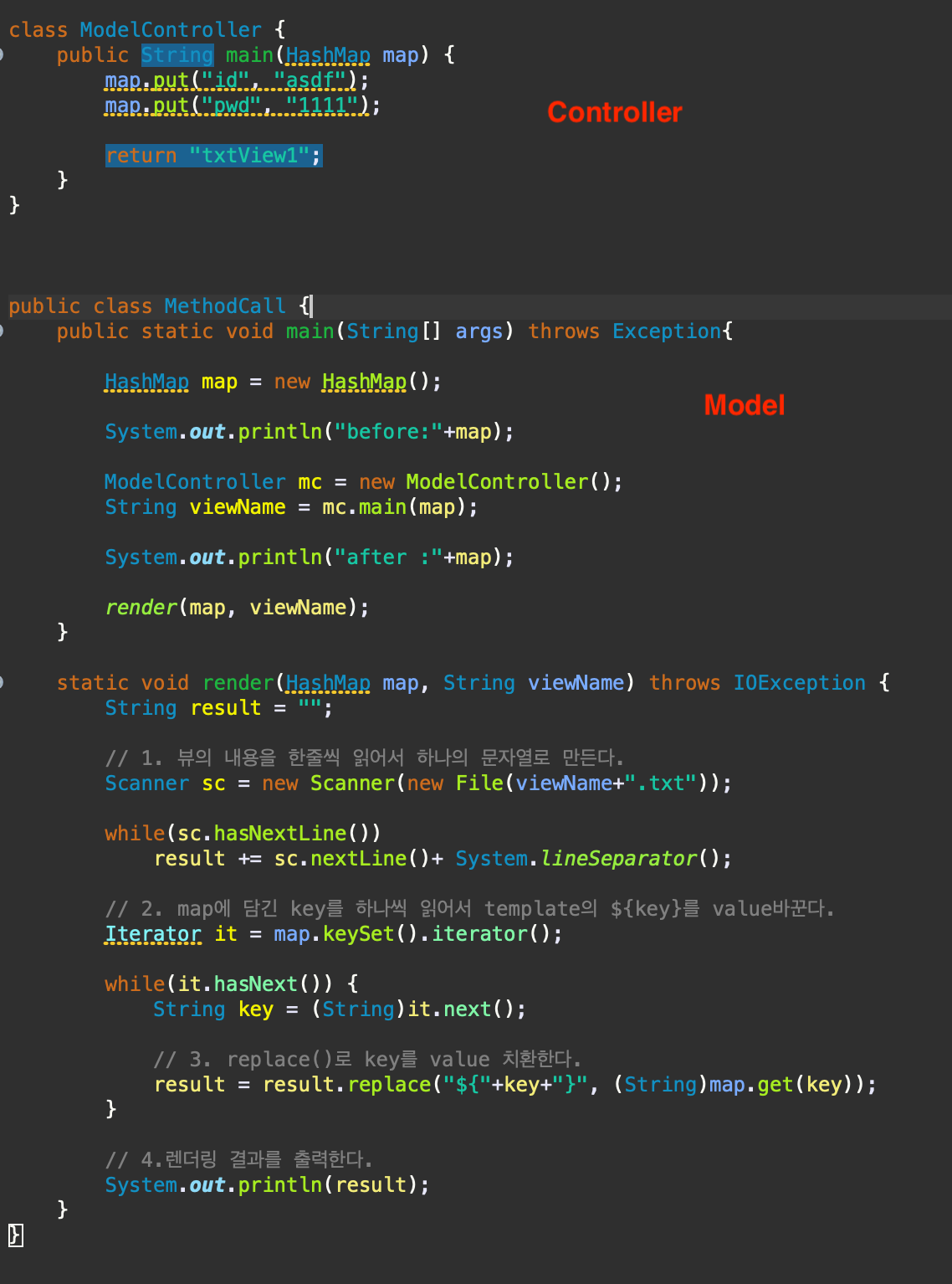 view를 읽어서 map에 있는 key , value를 맞춰 출력한다