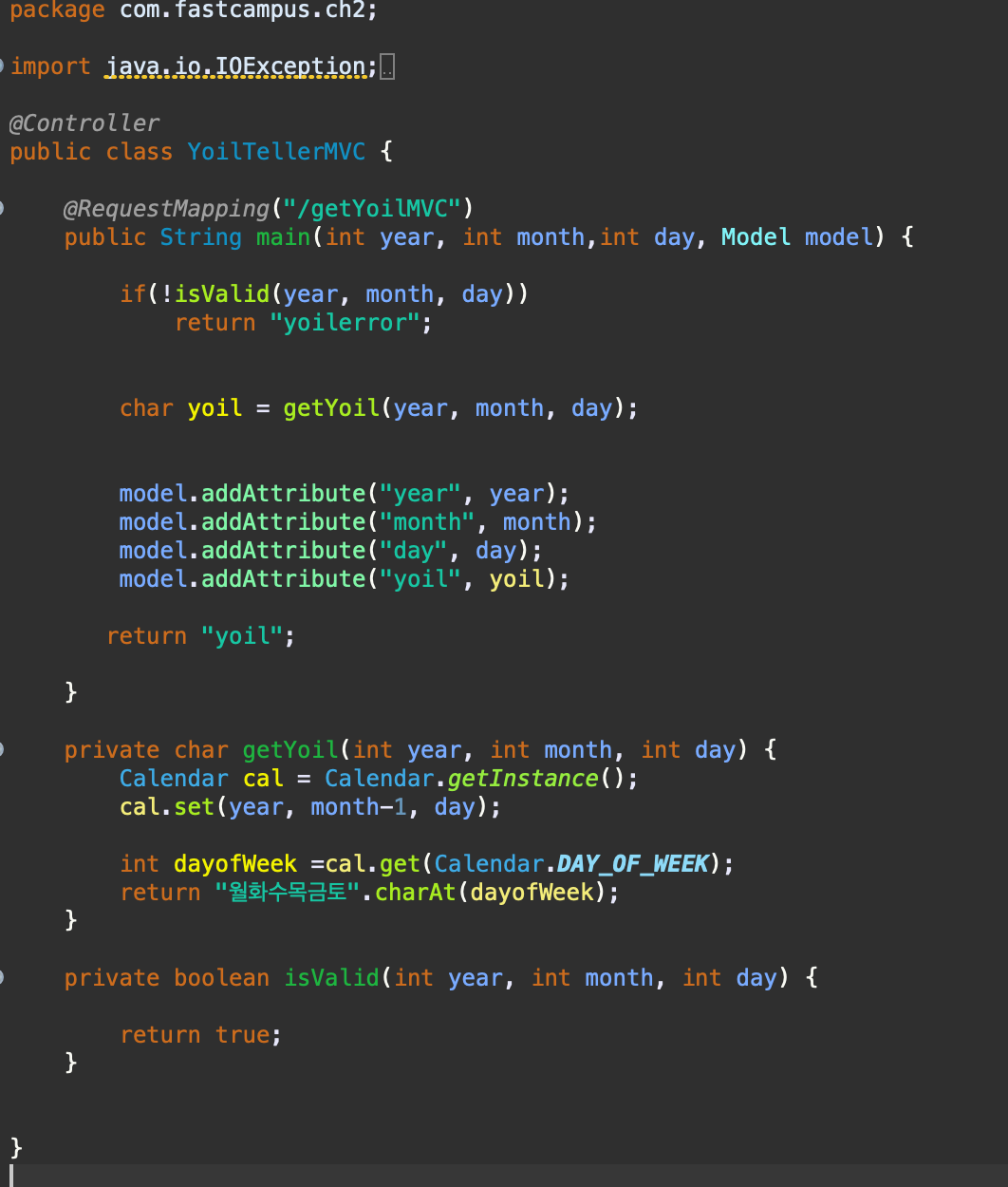 기존에 만들어놓은 YoilTellerMVC.java 파일을 가지고