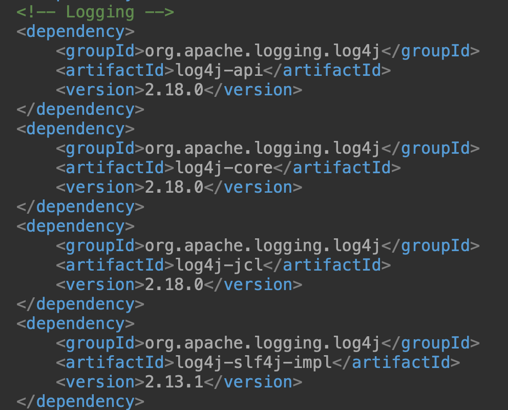 log4j 는 해킹 위험이 있기 때문에 log4j2로 변경한다