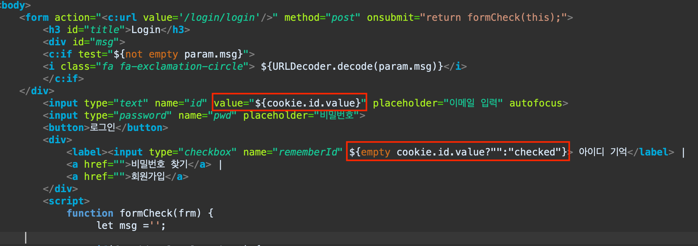 (1) 쿠키이용하여 id 기억하게하기