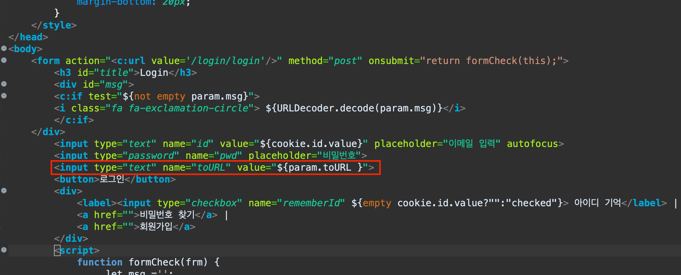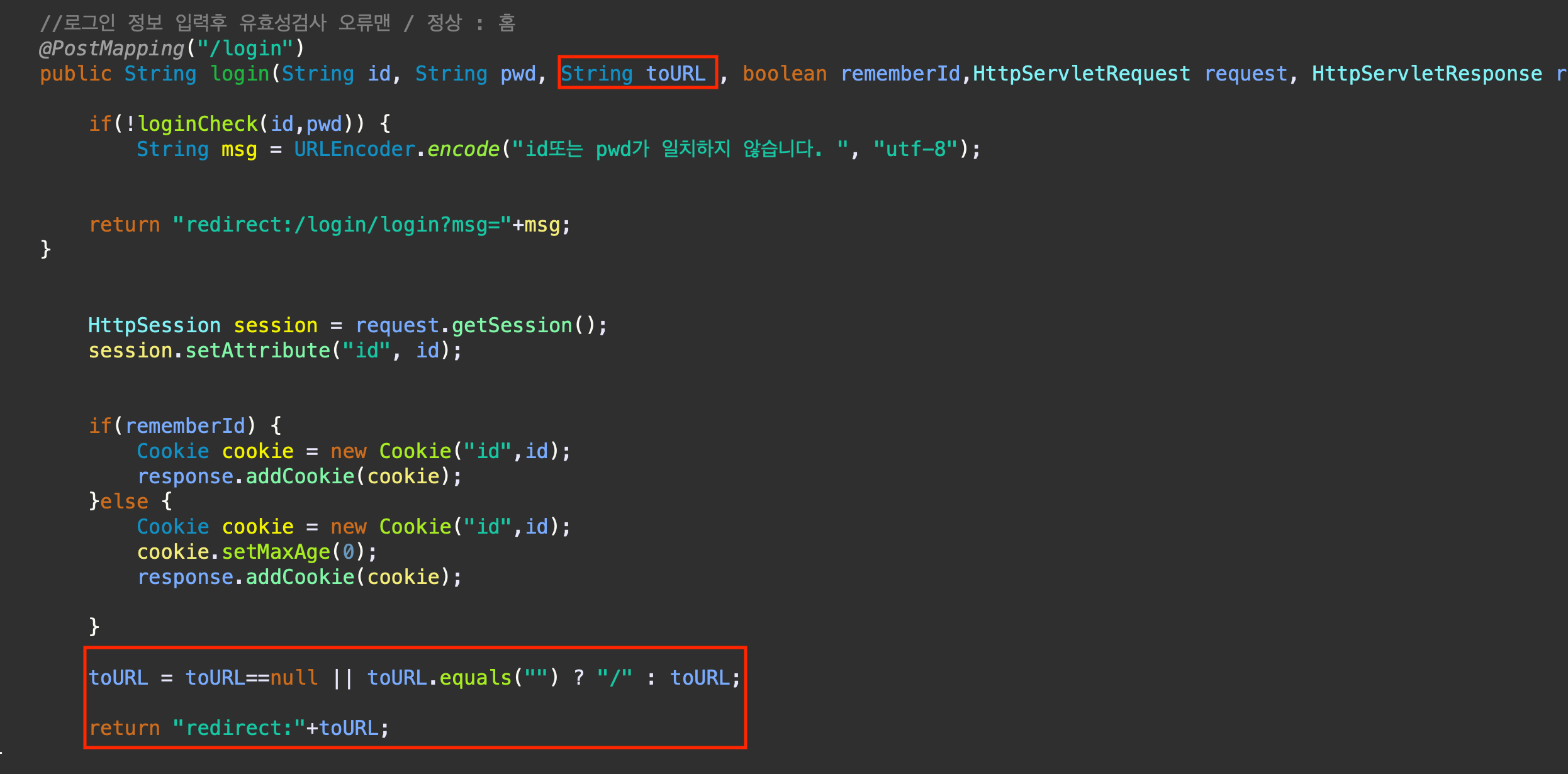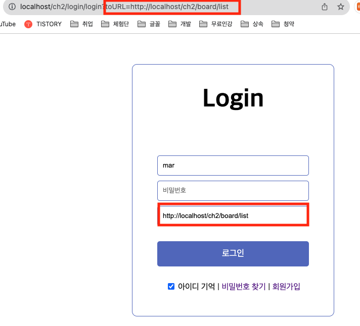 loginController에서 로그인 눌렀을때 다음 화면을 홈이 아니라 toURL로 갈수 있도록 설정한다