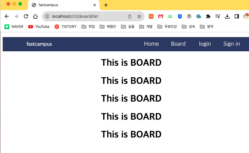 /ch2/board/list 의 주소로 갈수 있도록 수정해야한다