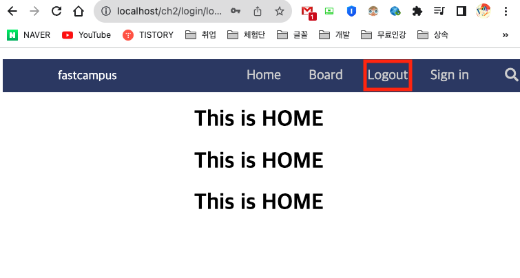 로그아웃시 세션이 종료되고 홈화면으로 이동해야한다.