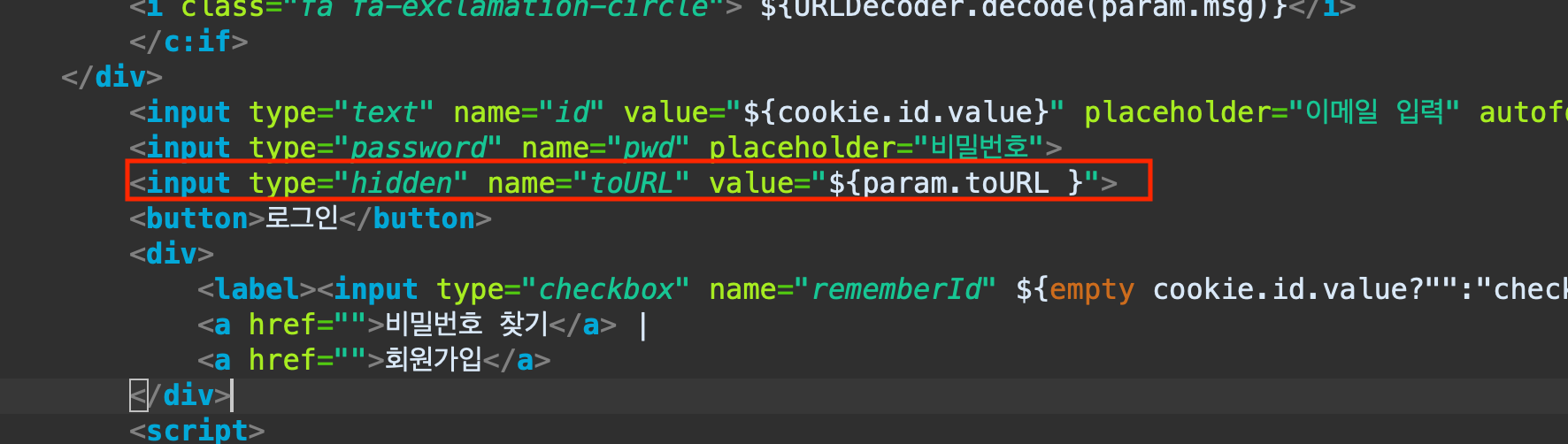 정상적으로 toURL을 가져온것을 확인한뒤 hidden으로 바꾸면 정보는 받아오지만 실제 눈으로는 보이지가 않게 바꿀수 있다