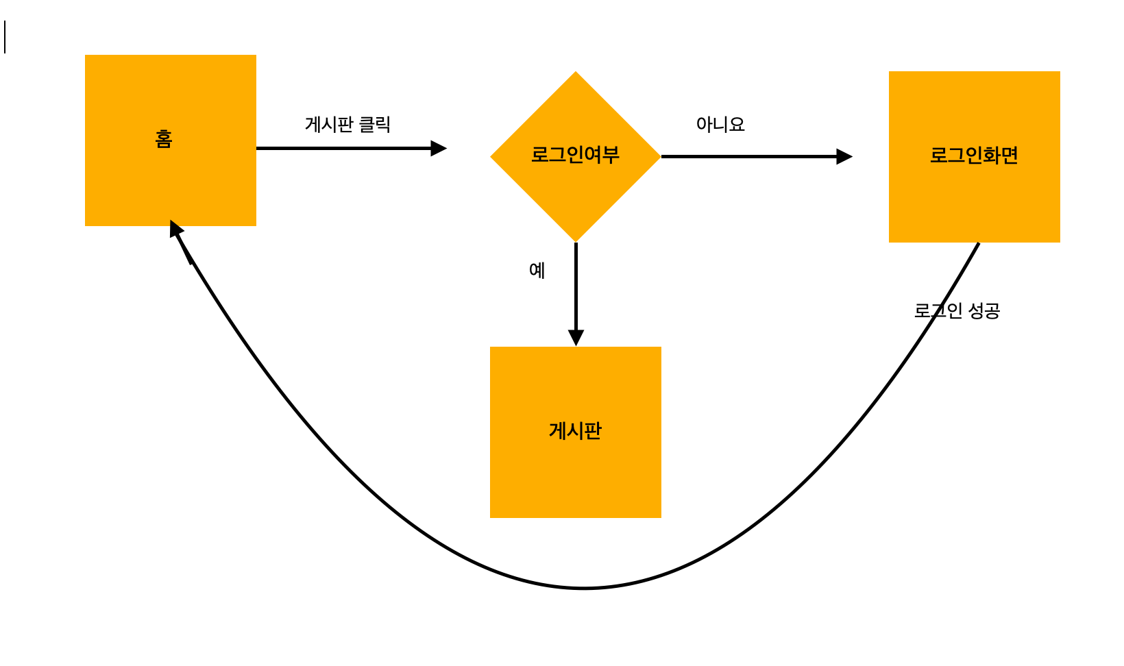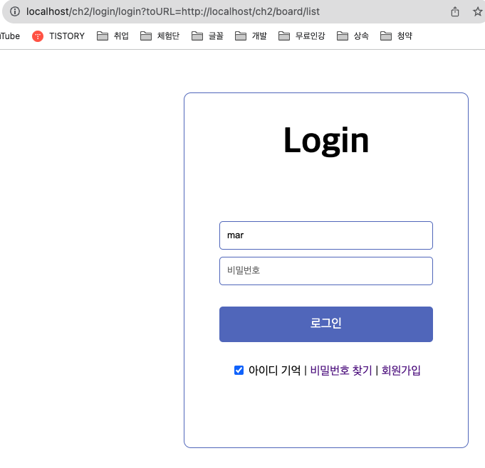 홈인 상태에서 게시판을 클릭하면 로그인 화면이 나옴