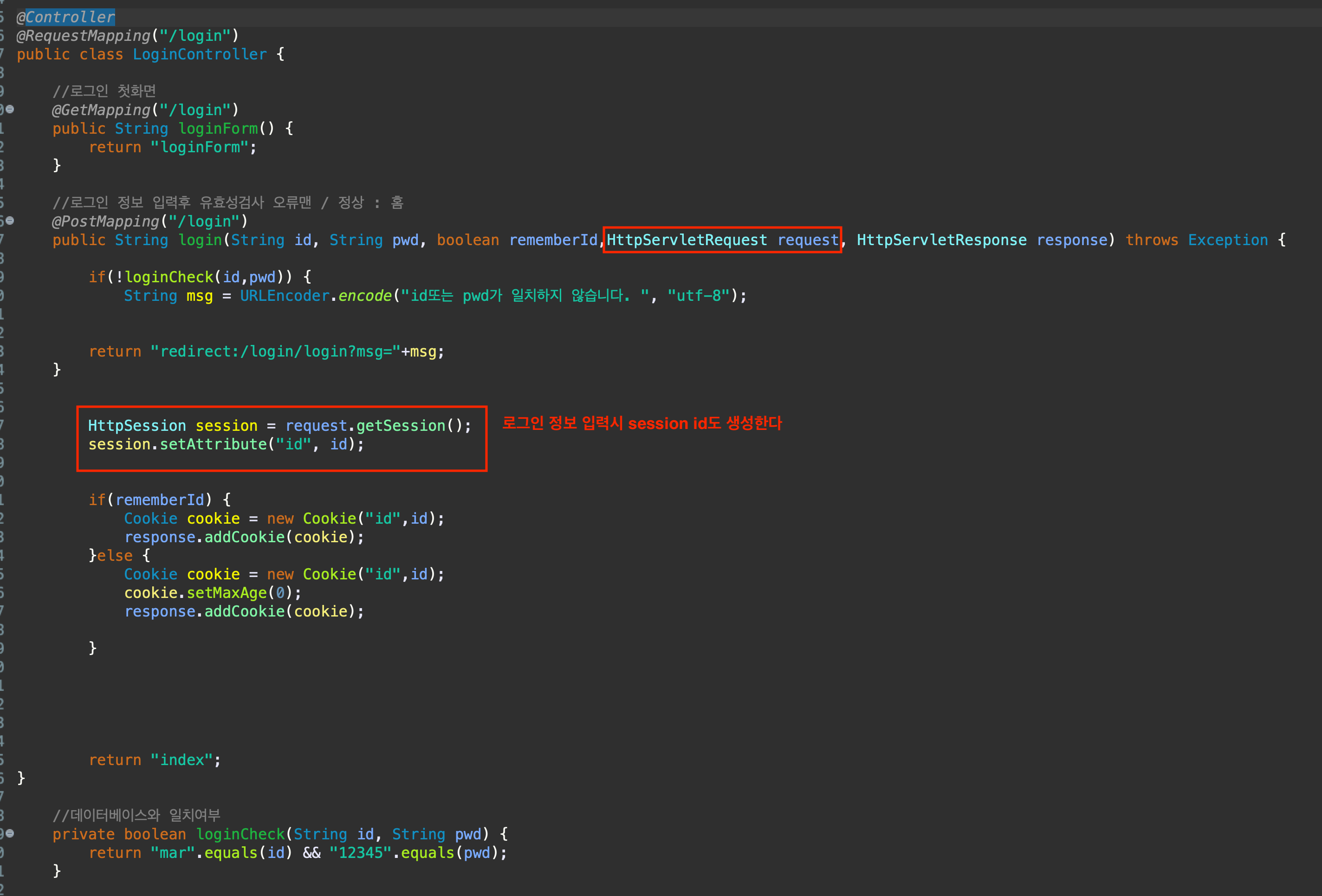 로그인 화면에서 로그인 정보 입력시 쿠키 말고도 세션 정보 추가할수 있도록 내용을 추가한다 .