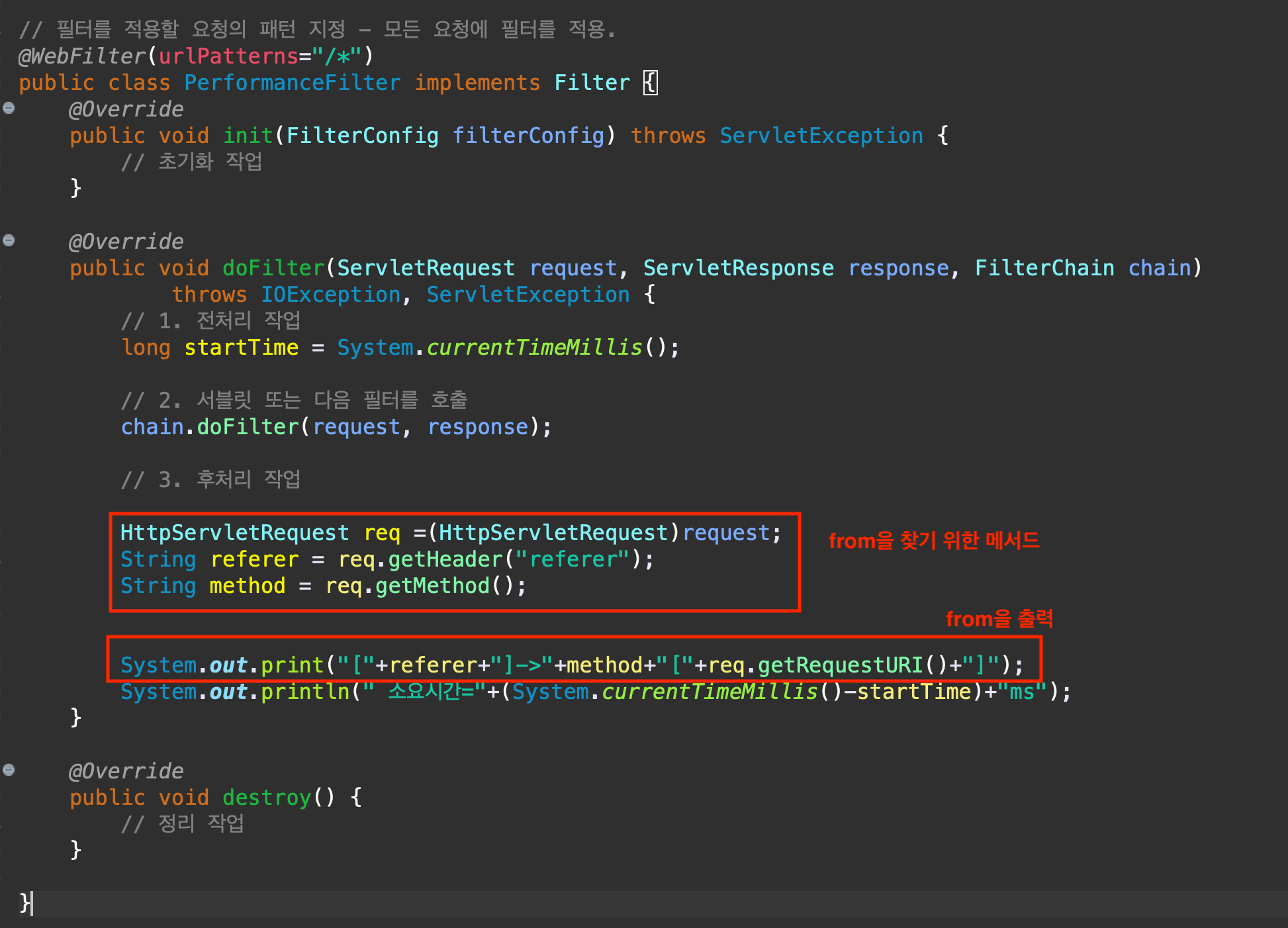 어디로 끝났는지 to 는 request.getRequestURL()으로 찾을수 있다