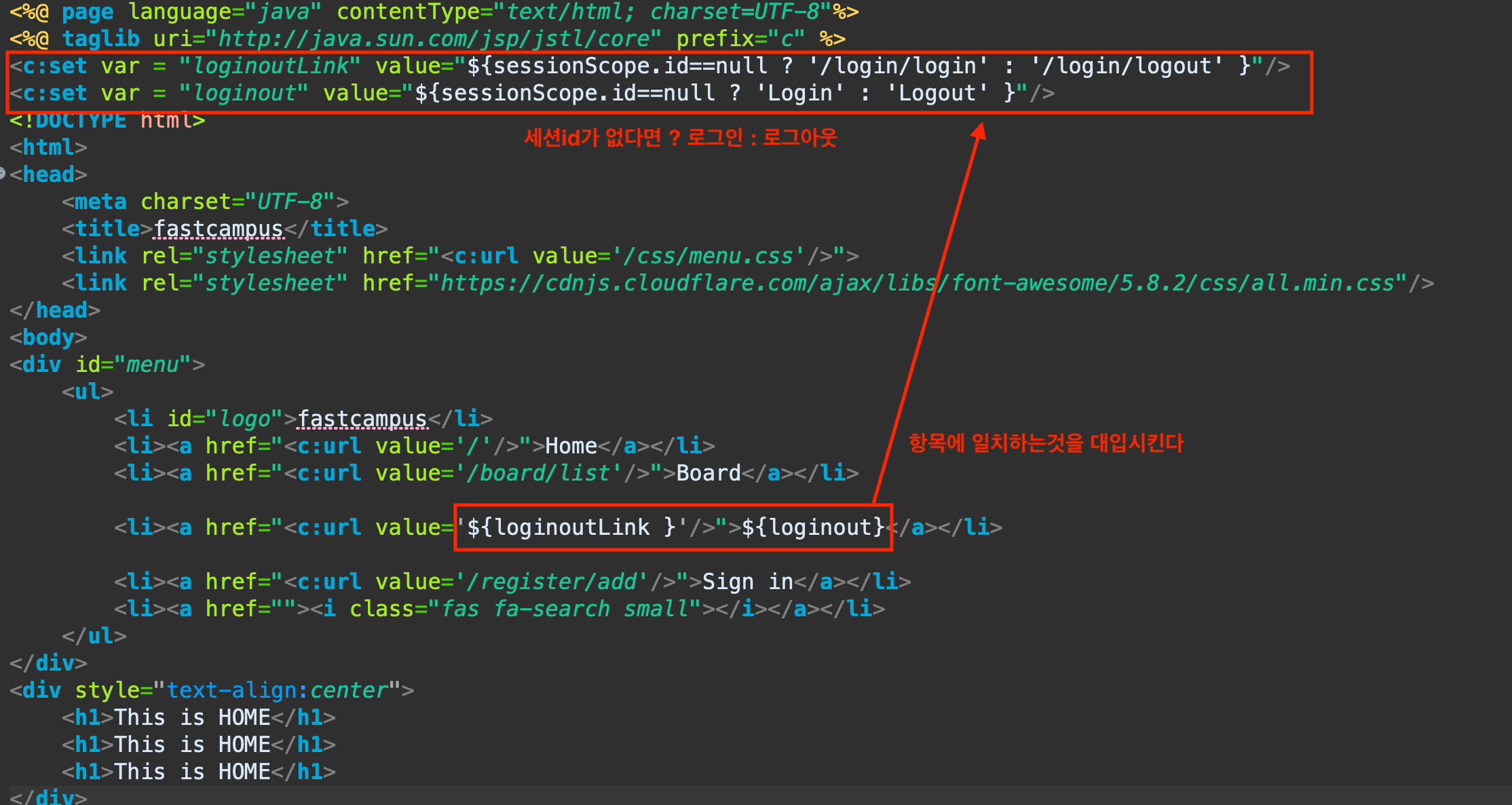 홈 index.jsp 파일에서