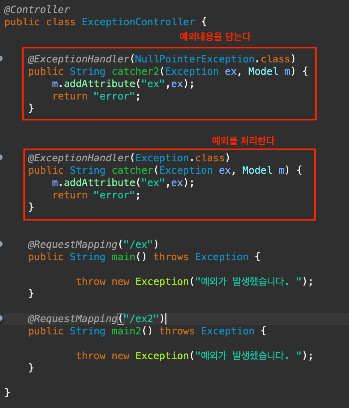 (2) 예외 처리시 필요한 도구 : jsp, controller , catcher