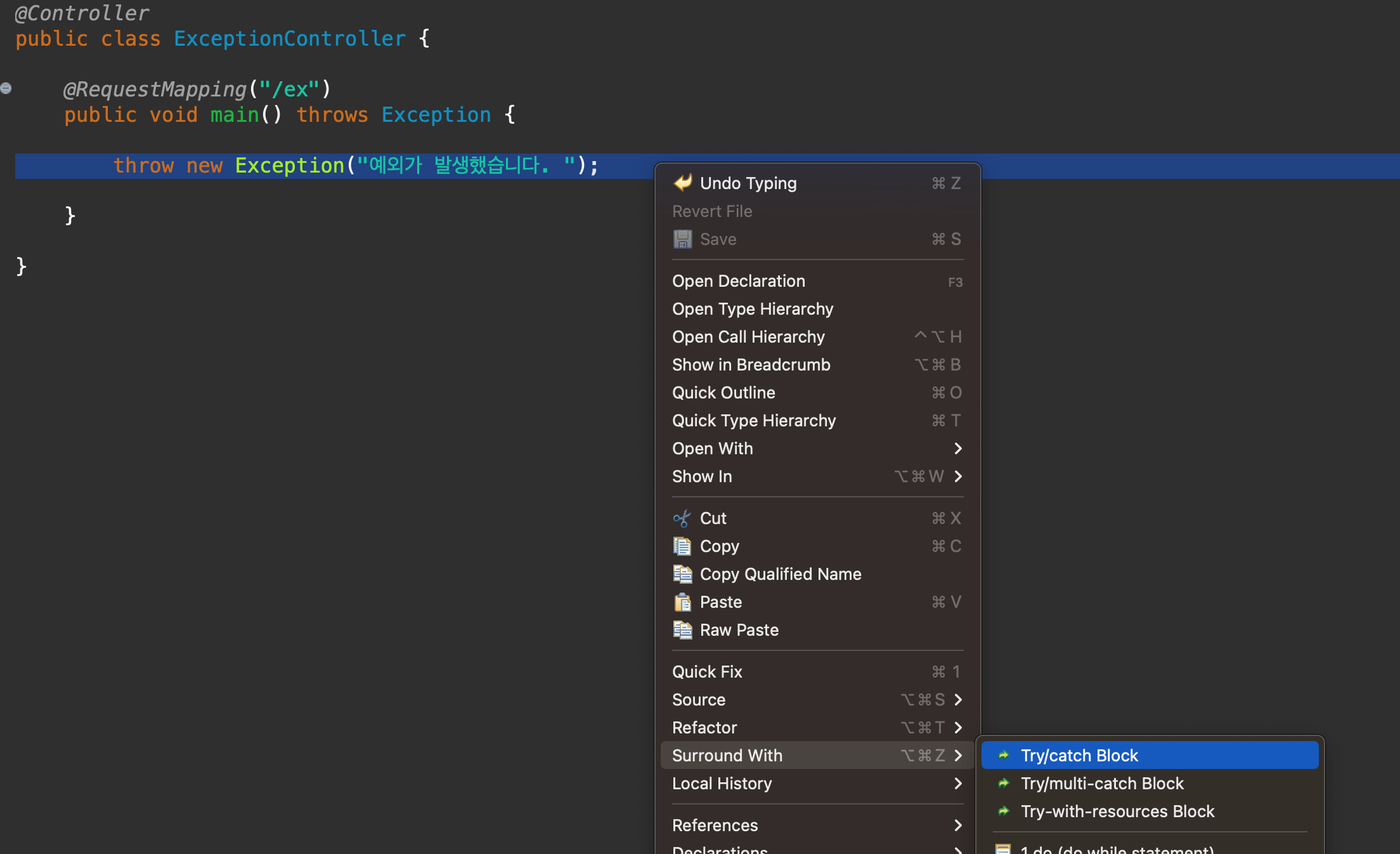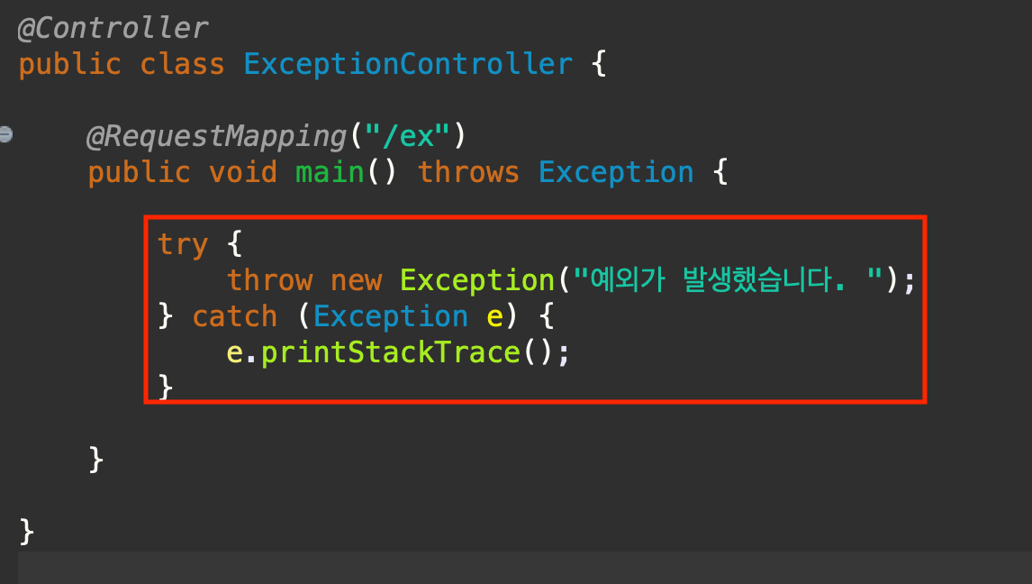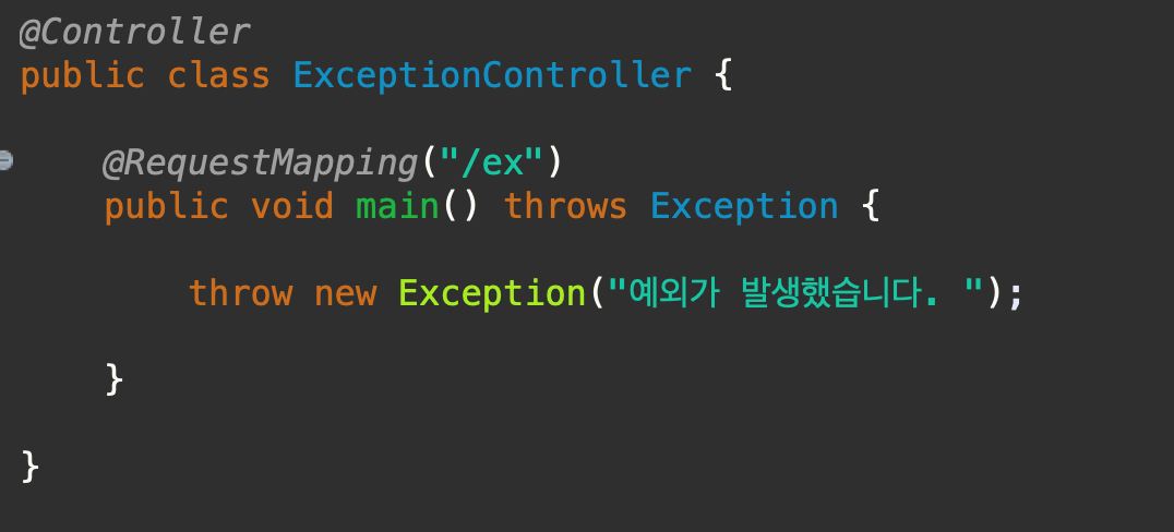 예외를 발생시킨 동작을 실행한 컨트롤러