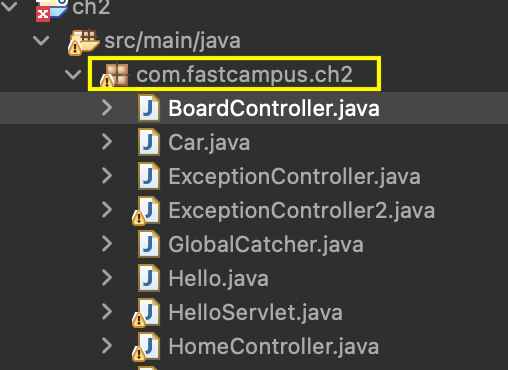 패키지 이름 "com.fastcampus.ch2" 을 넣는다면 패키지에만 적용이 되고