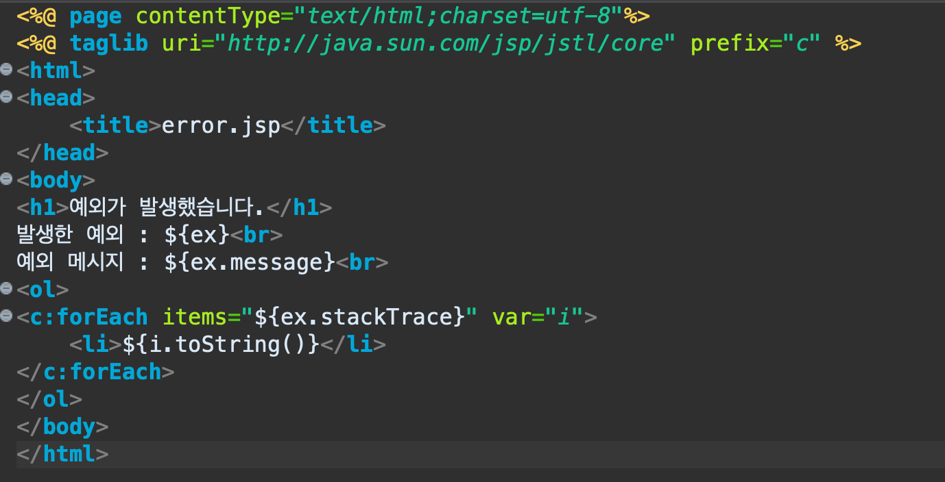 error.jsp 에서 isErrorPage="true" 기재를 하면