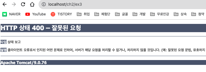 상태코드 400에러가 뜬 이유는 ex.jsp라는 파일을 찾을수 없기 때문에 뜬 오류이다.