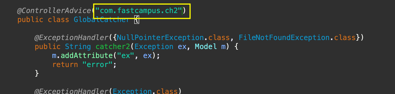 수정이 필요한 클래스는 별도로 지정하여 @ExceptionHanlder를 적용시킬수 있다.