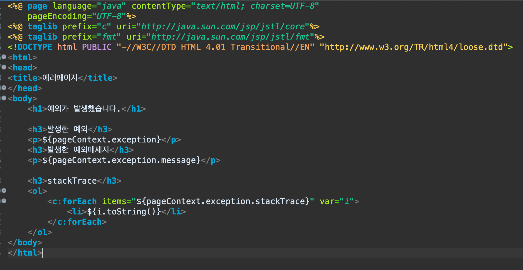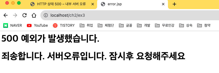 에러 발생시 보일수 있는 view 화면 (error.jsp)