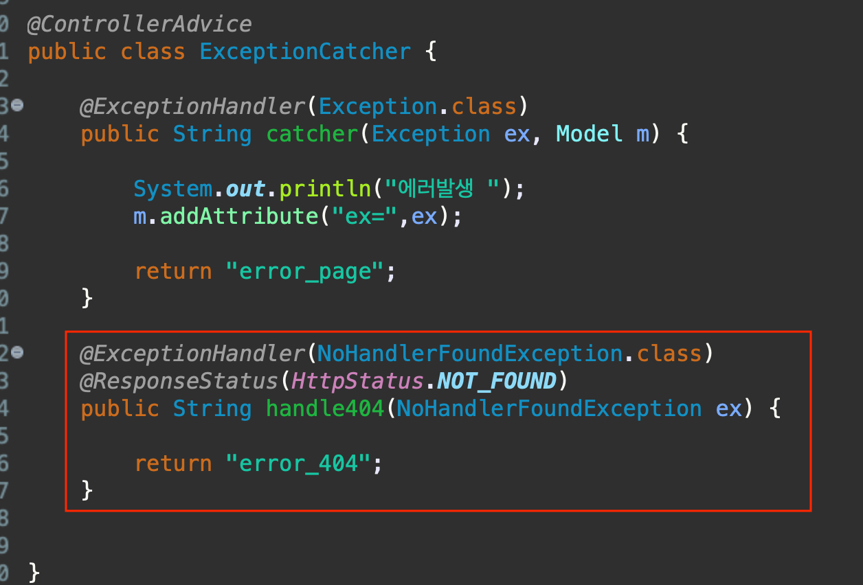 모든 클래스에 예외가 발생했을때 처리하는 @ControllerAdvice 클래스에 만들면