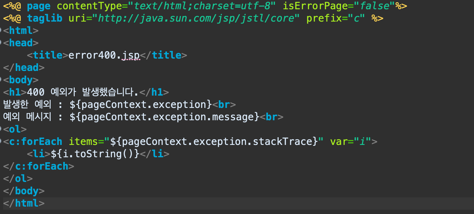 뷰 error400.jsp 파일에서 isErrorPage ="false"로 수정한다