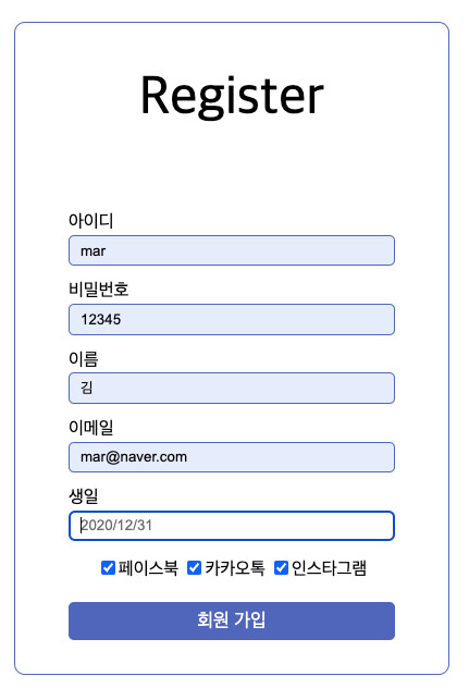 회원가입 정보 입력후 registerInfo.jsp 에 추가되는 값을 넣는다