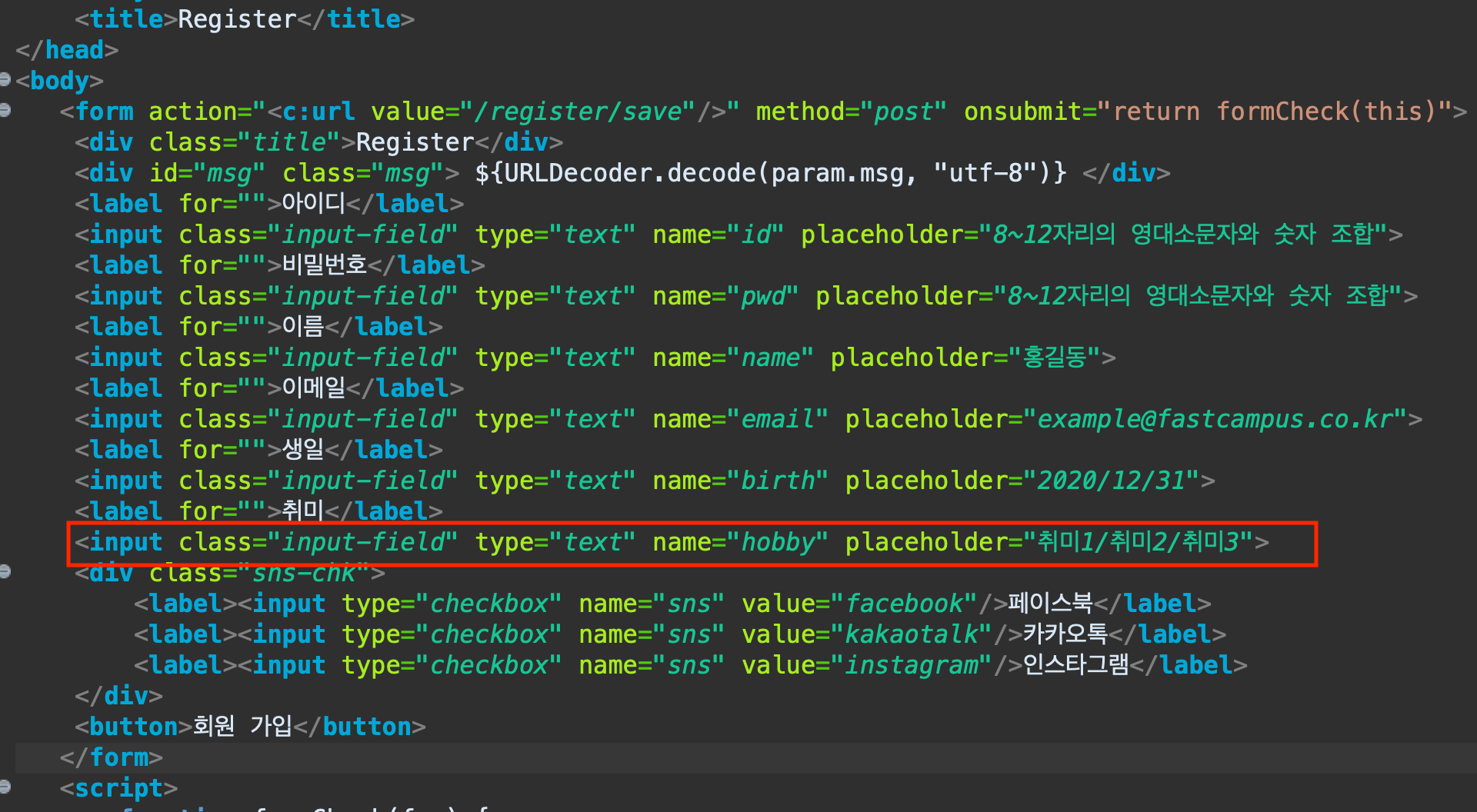 취미를 적을수 있는 칸을 폼 디자인에 추가한다