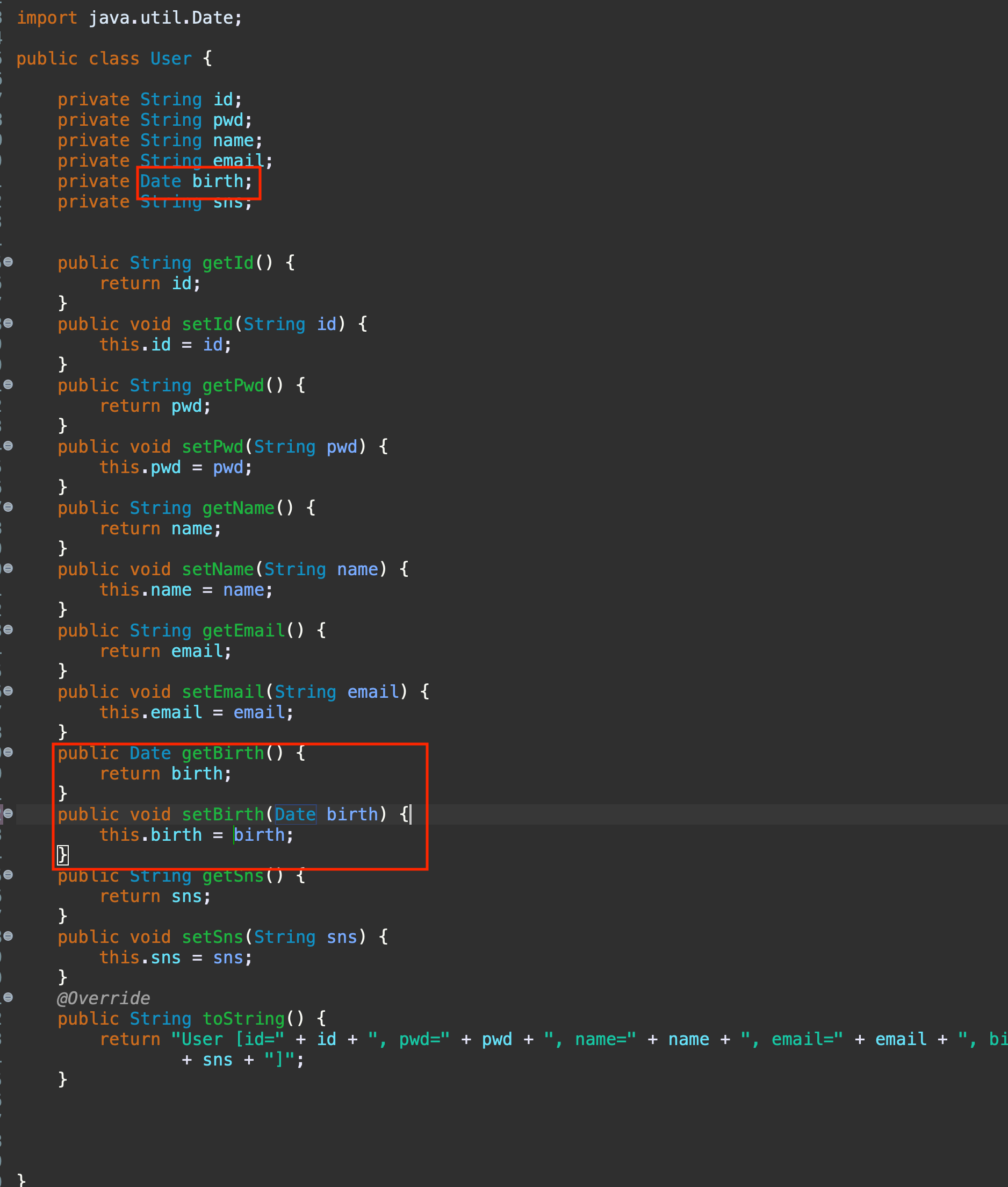String-Date 타입 변환을 위해서 변환메서드 생성하여 작동시킨다