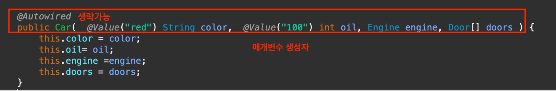 - 매개변수를 가진 생성자에 사용하기